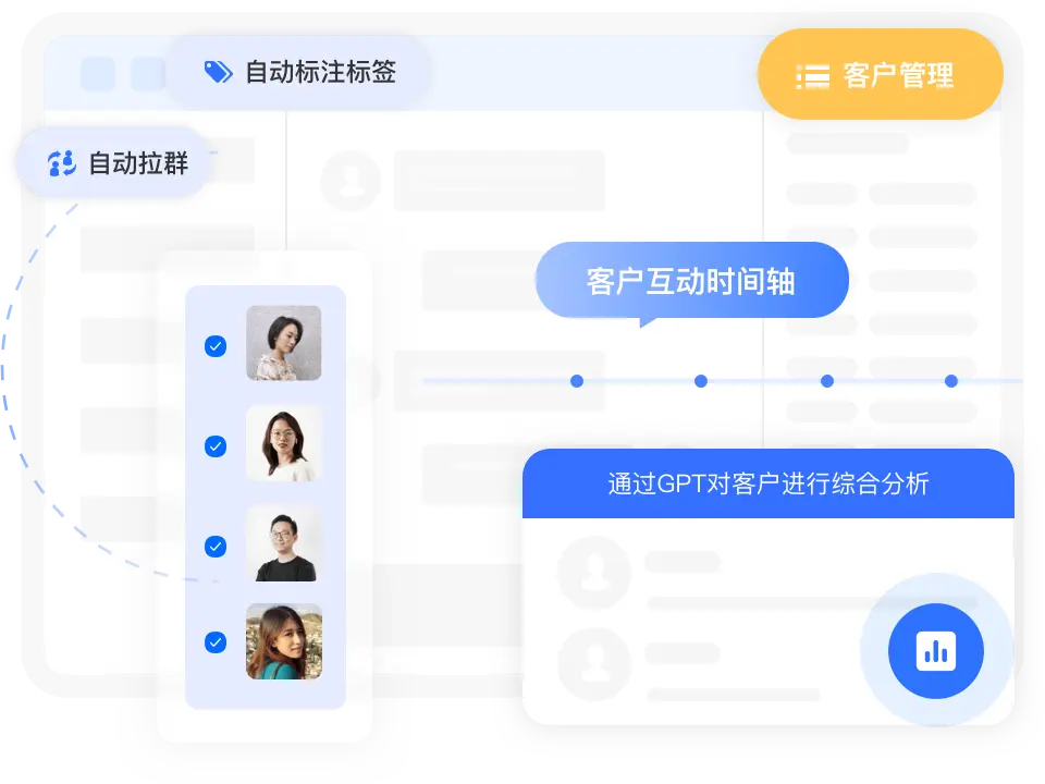 客户详情、时间轴、个人信息等内容自动关联;微信客户信息自动匹配