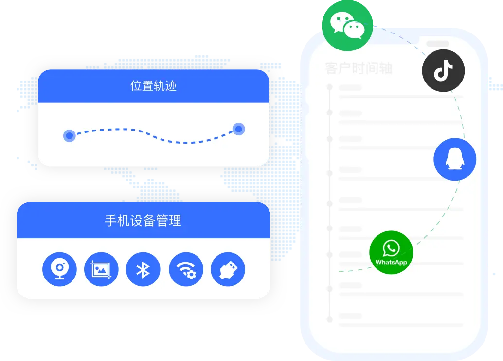 可设置销售手机的生效区域规则,离开有效区域后,禁止使用手机;也可查看手机位置及停留时长,生成位置轨迹