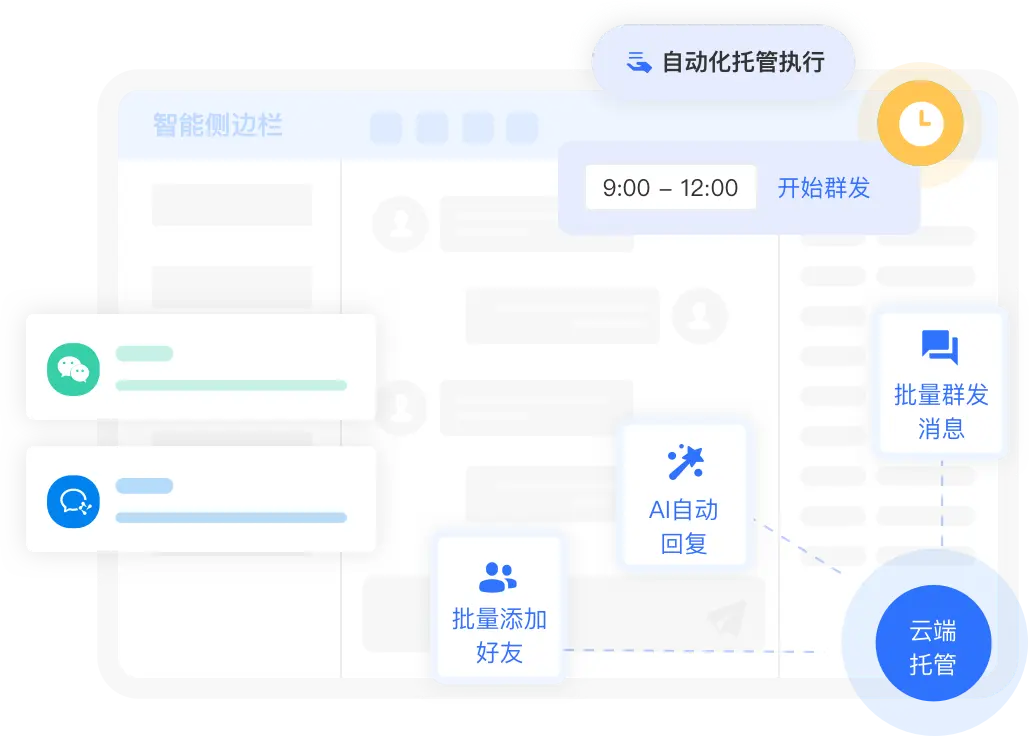 基于「RPA+AI」,为销售提供批量添加好友、群发消息、分享朋友圈、自动与客户对话等辅助功能