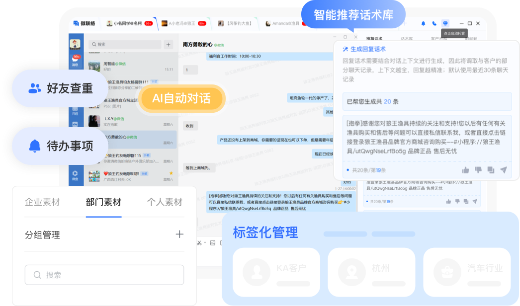 覆盖个微/企微的智能客服体系,提供多种客服管理方案,