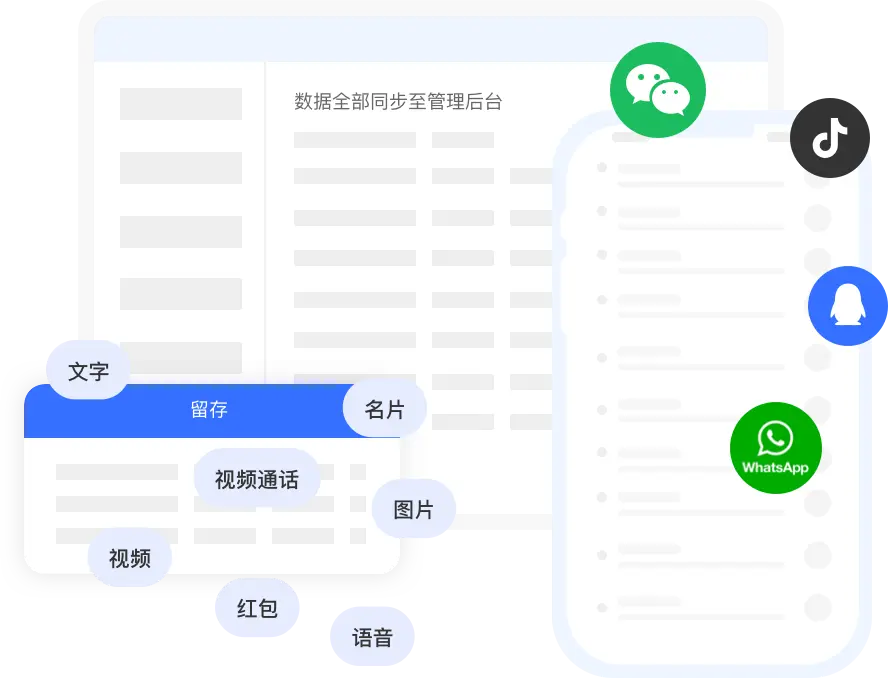 支持微信、抖音/极速版、QQ、WhatsApp等平台的沟通数据留存