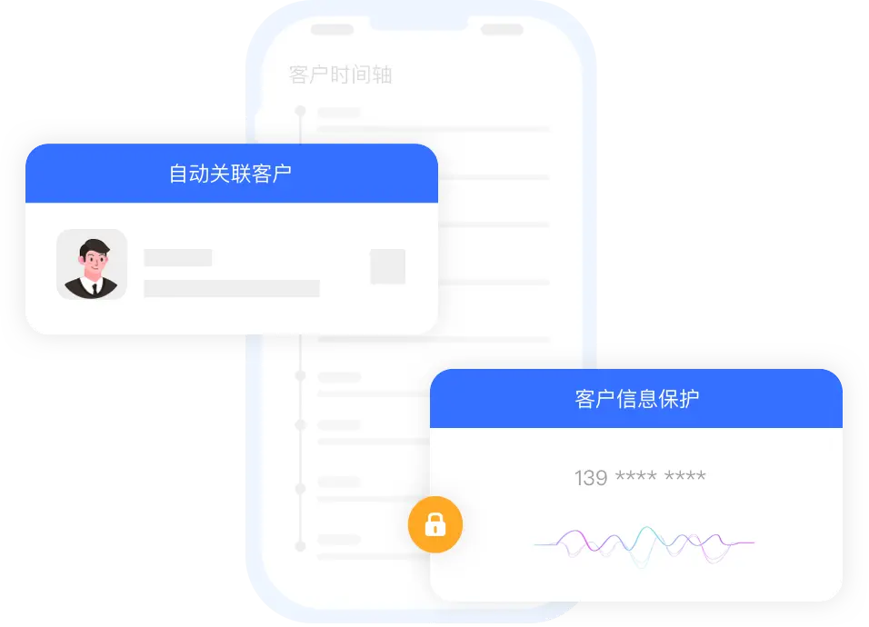 客户详情、时间轴、个人信息等内容自动关联;微信客户信息自动匹配