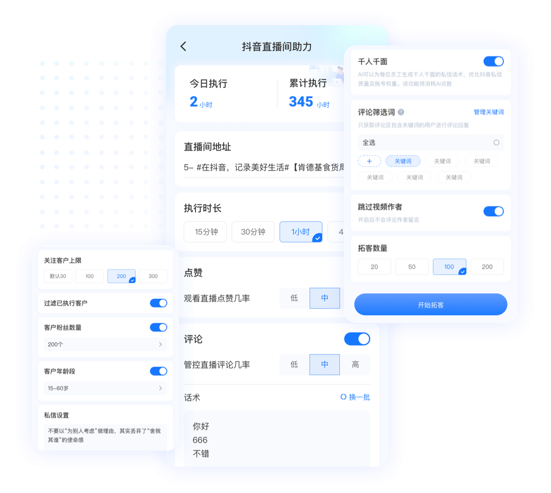 根据要拓客的客户行业属性,搜索关键词进入直播间,自动关注
