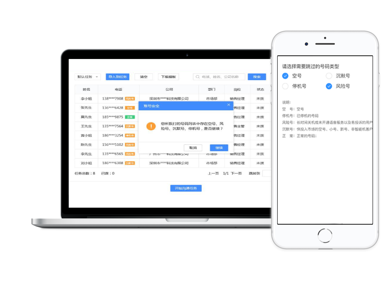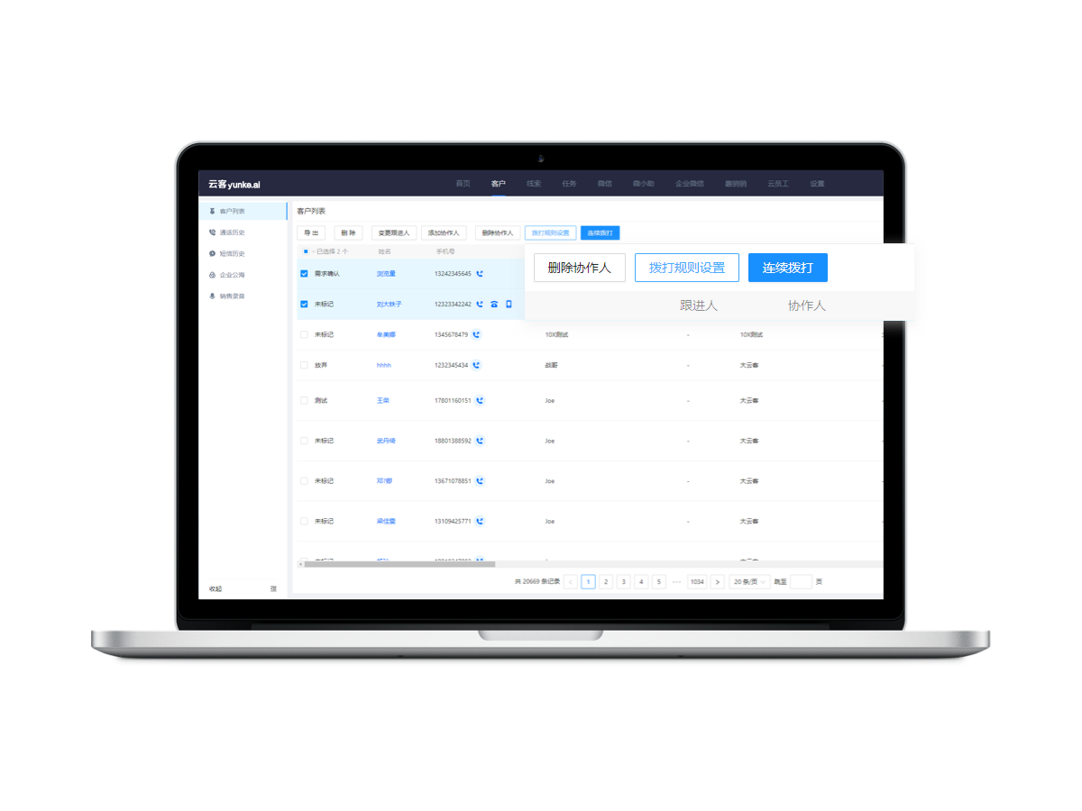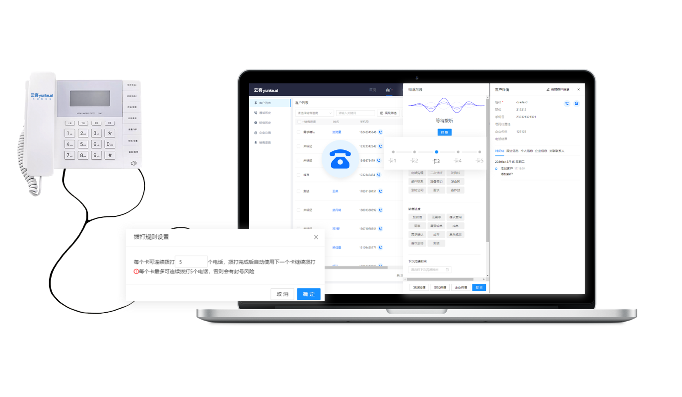 销售日常管理所需基本功能,外呼坐席,客户 管理,防投诉服务,客户流转,群呼功能、基 础的CRM功能等